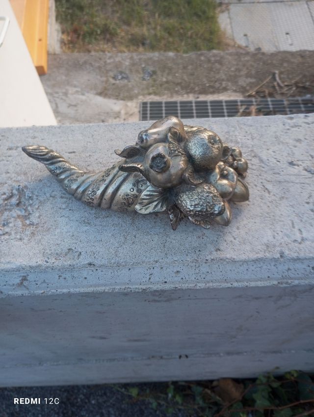 Cornucopia in argento, simbolo di opulenza, abbondanza e fortuna. - Design elaborato con dettagli. - Materiale: Argento.