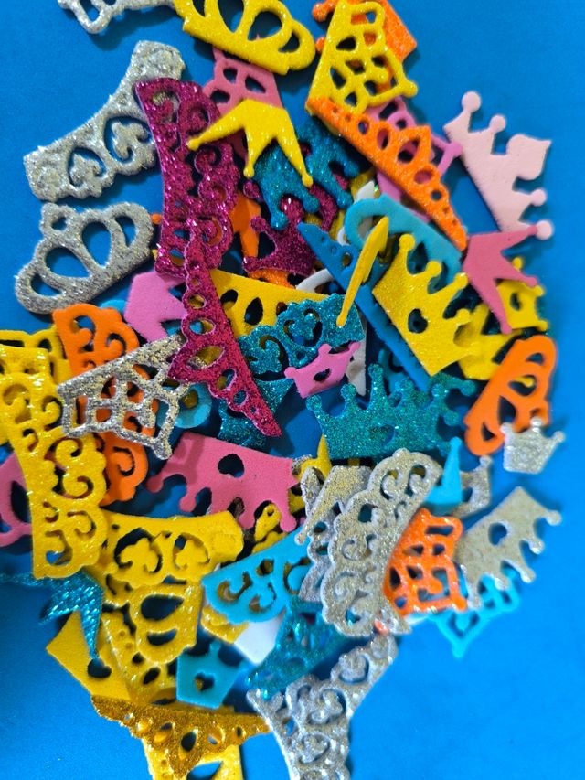 Dettagli del prodottoCoroncine luccicanti perfette per decorazioni o per giochi! Sono realizzate in gomma eva e sono tutte diverse tra loro.