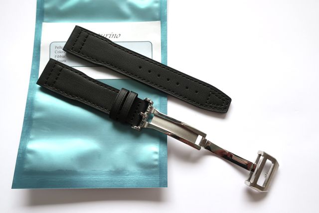 Cinturino 21mm in nylon e pelle nera stile IWC Deplo
