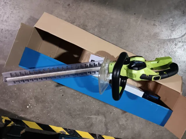 Dettagli del prodottoTagliasiepi elettrico a batteria. La batteria è al litio Li-ion da 18 V. Lunghezza della lama di 51 cm e con azionamento di sicurezza. Effettua 2.200 tagli al minuto. Ha un design compatto e molto leggero, ideale per lavori di lunga durata. Il design dell'impugnatura offre maggiore comfort e controllo dello strumento. Adatto per siepi medie e grandi, permette di tagliare rami molto grandi senza necessità di strumenti secondari. Include batteria e caricabatterie nuovi. La descrizione è stata tradotta automaticamente.Misure del prodotto