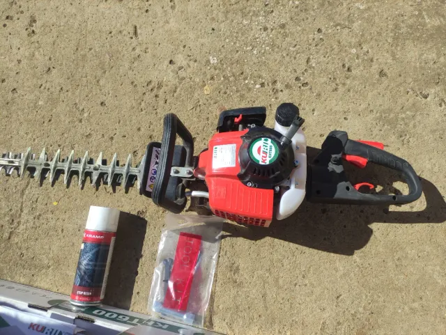 Dettagli del prodottoTagliasiepi a benzina Kuril con motore da 22,5 cc e lama da 60 cm.