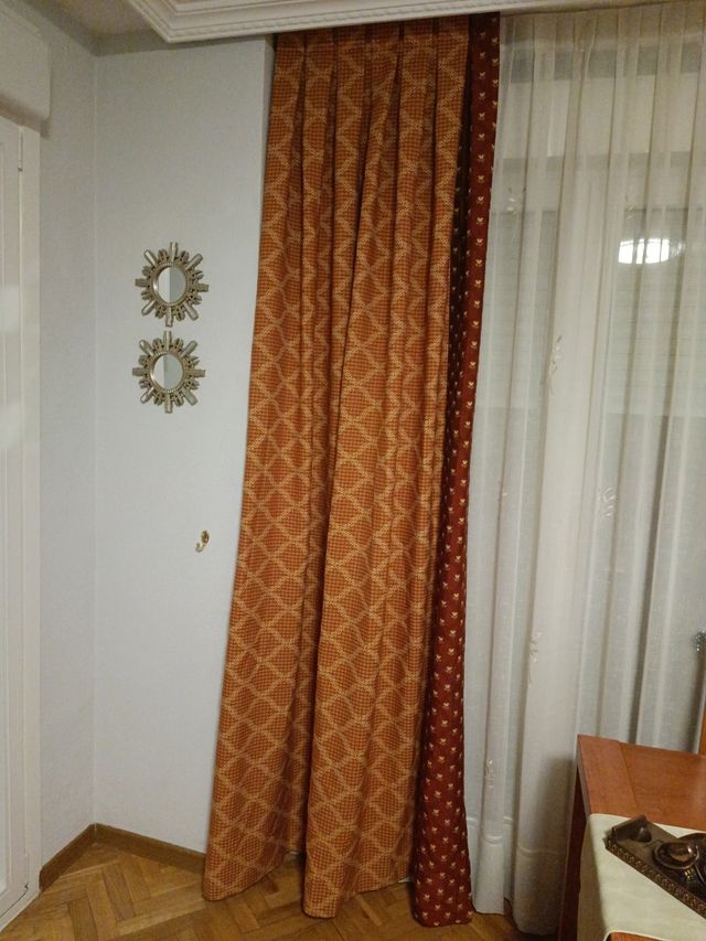 le tende da soggiorno sono 2, color bordeaux, plissettate 60 cm e senza pieghe 170 cm, altezza 245