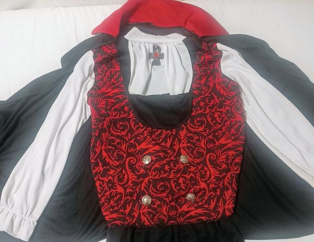 Dettagli del prodottoCostume Alloween Conte Dracula bambino 6 anni+ con elastico, misura in vita fino 10 cm,llunghezza pantalone 29 cm, maglia circonferenza collo 8 cm , vestibilità comoda. Usato. In buono stato. Maglia, pantalone,mantello accessorio ed custodia compresa.
