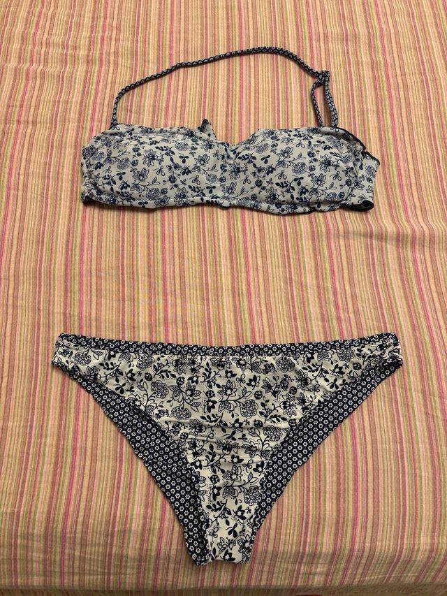 Costume bianco e blu a fiorellini