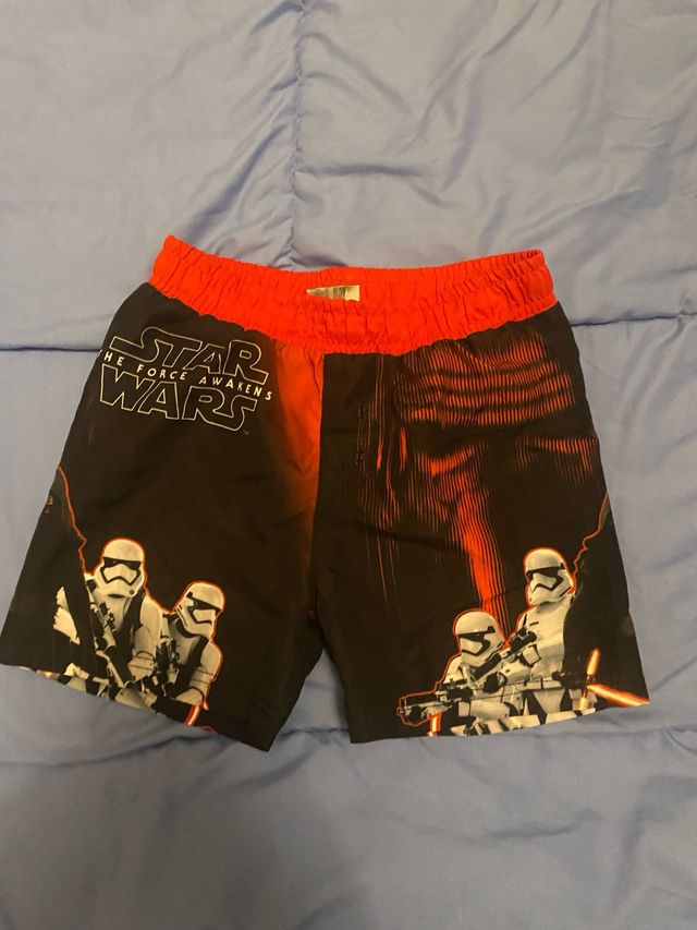 Costume da bagno per bambino a tema Star Wars, The Force Awakens. - Stampa con Stormtrooper e logo Star Wars. - Vita elasticizzata rossa.