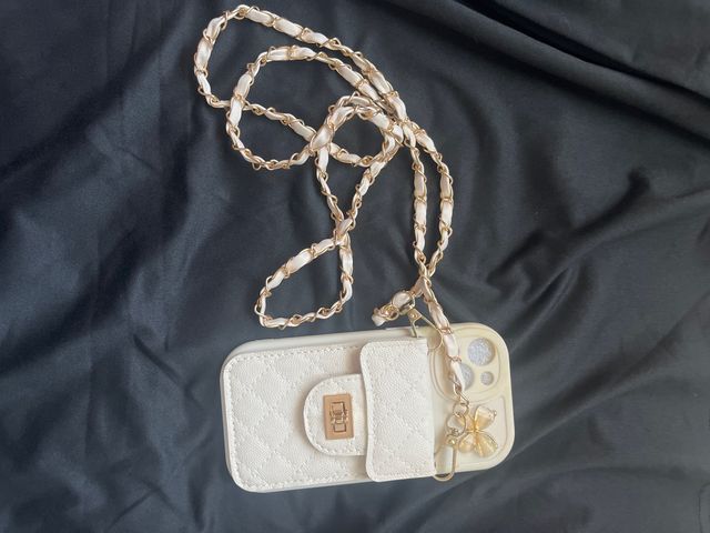 Dettagli del prodottoBellissima cover per iPhone con un design elegante e una pratica tracolla.