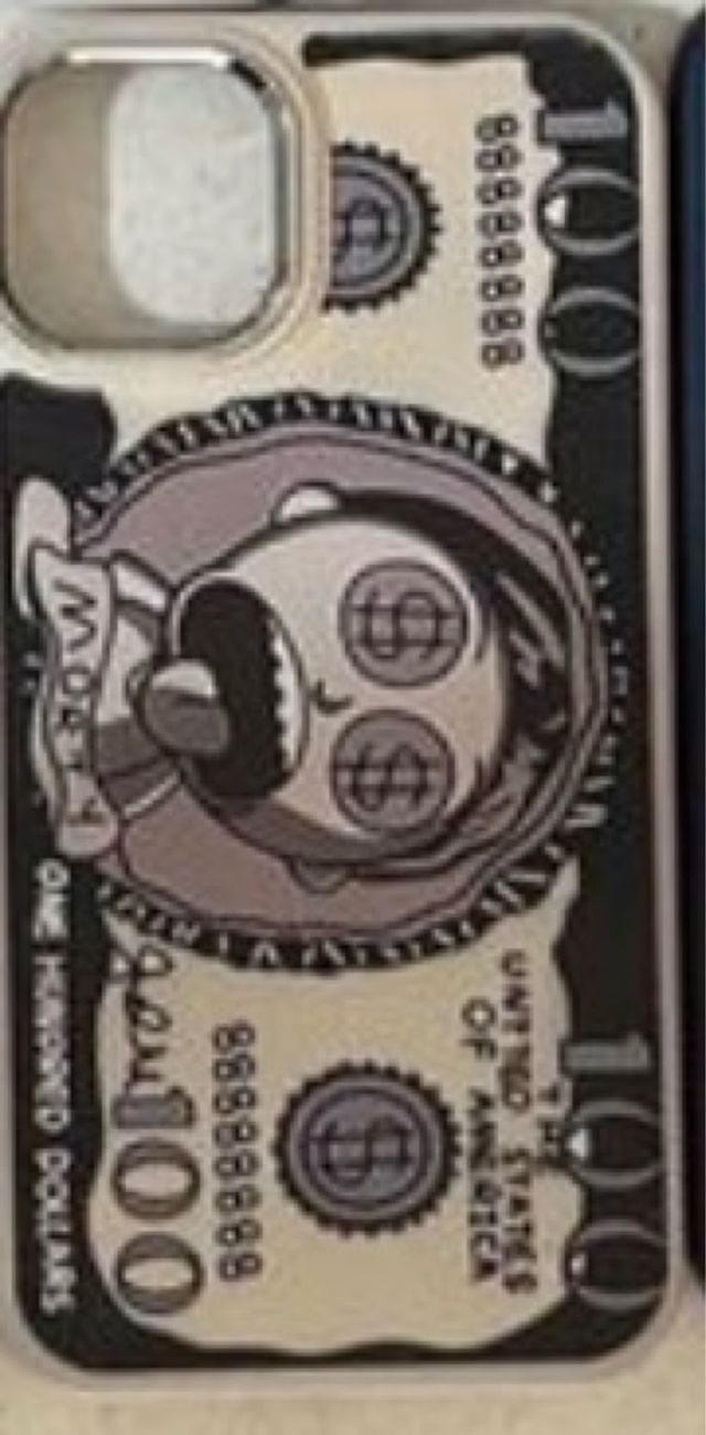 Dettagli del prodottoCover per iPhone 11 con un originale design ispirato a una banconota da 100 dollari. La grafica presenta un personaggio stilizzato e dettagli che richiamano la valuta americana.