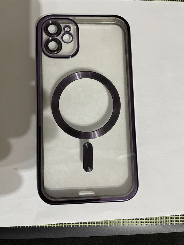 Cover trasparente con bordo viola per iPhone 11. - Compatibile con MagSafe. - Protezione per le fotocamere.