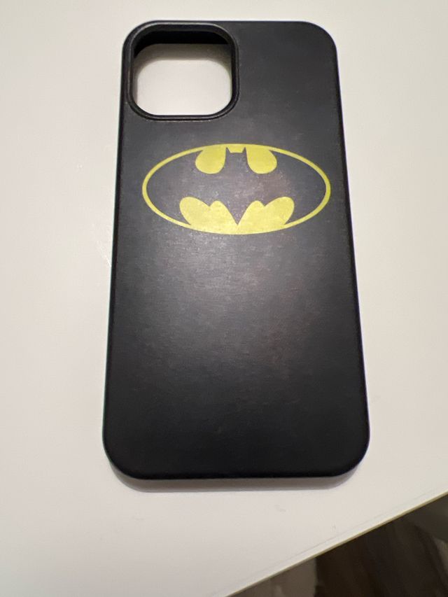 Cover per iPhone 13 Pro Max con logo Batman. - Design nero con logo giallo. - Protezione per il tuo smartphone.
