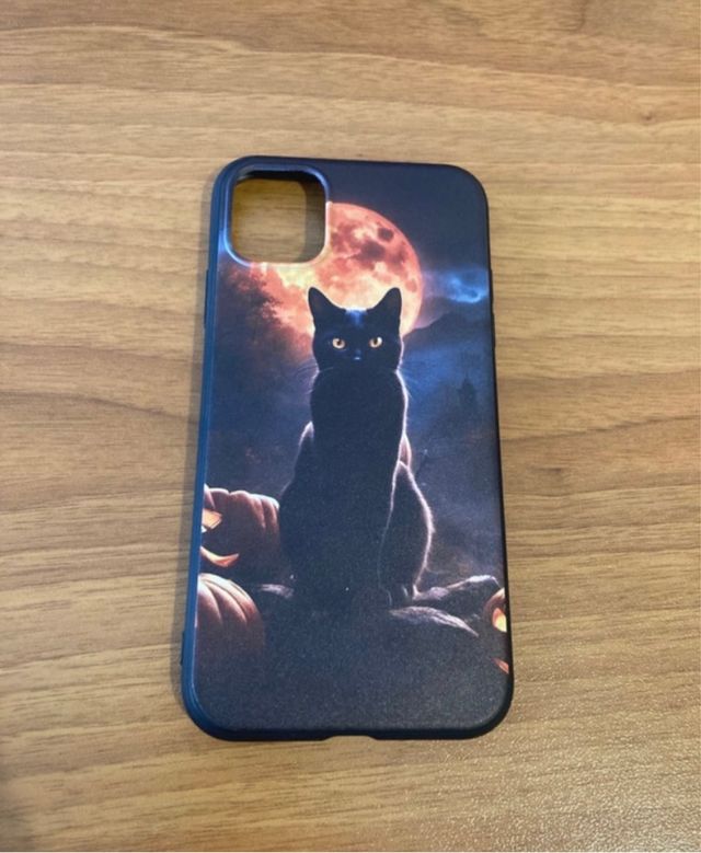 Dettagli del prodottoCover per iPhone dimensioni 15cm per 11cm, nera col disegno di un gatto sul retro. Nuova mai utilizzata.