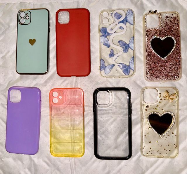 Dettagli del prodottoCover compatibili con iPhone 11, vari modelli usati pochissime volte con aggiunta pocket socket (supporto telefono ) assolutamente rimovibile.