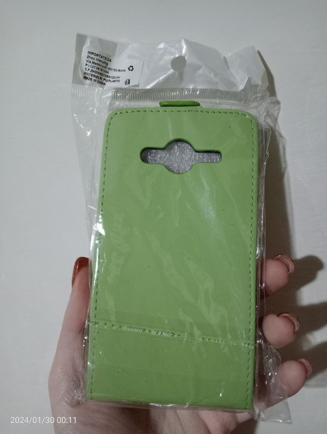 Cover a portafoglio nuova verde per smartphone Samsung Galaxy Core 2. In più una cover usata con gufi.