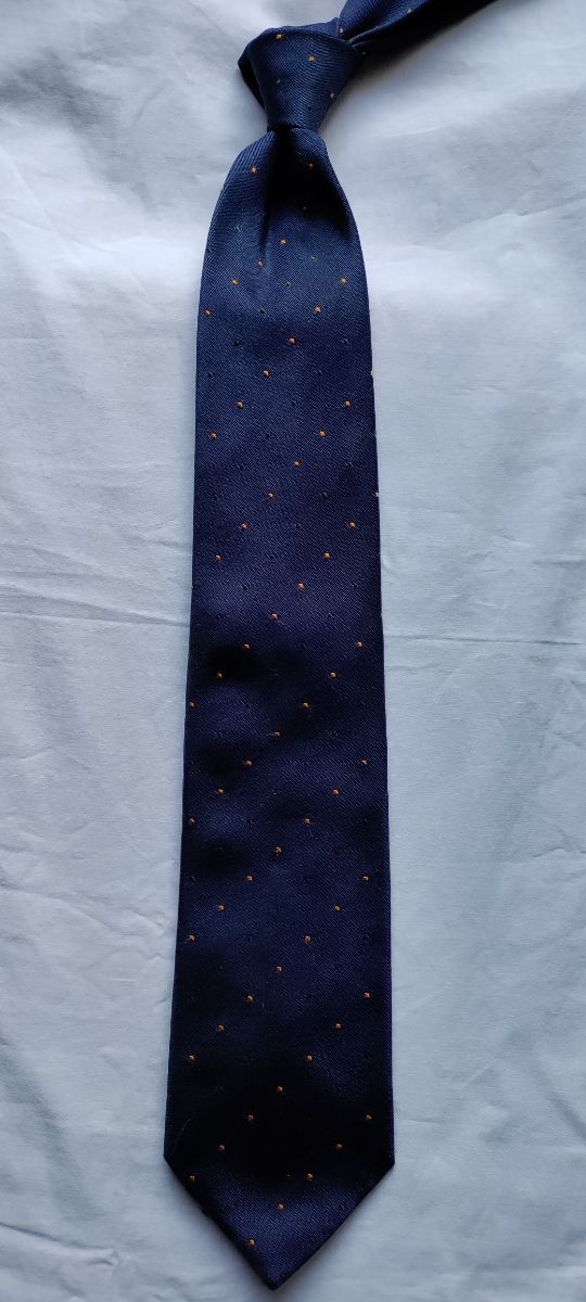 Elegantissima cravatta seta blu scuro con minuscoli quadratini trasversali color oro. Ottimo tessuto
