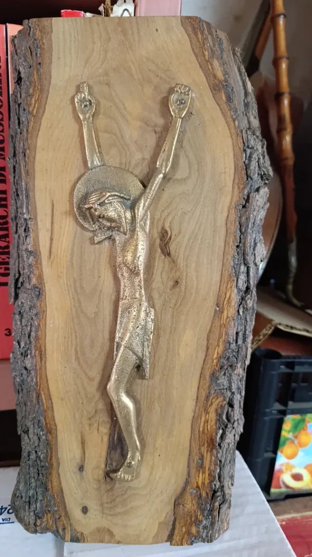 Crocifisso in bronzo su legno d'ulivo. Dimensioni altezza cm.32 larghezza 17.