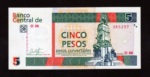 Banconota da 5 pesos convertibles di Cuba, emessa nel 2017.