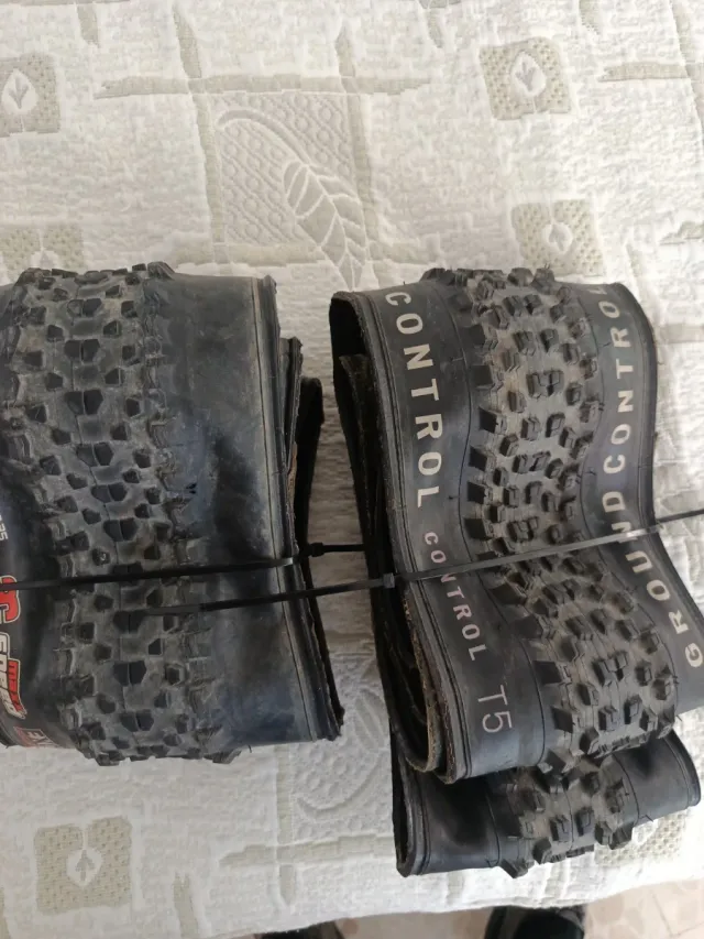 Dettagli del prodottoDue coperture per bicicletta da montagna, una Specialized Ground Control T5 e una Maxxis Ikon. Sono pronte per Tubeless e hanno mezza vita. La descrizione è stata tradotta automaticamente.