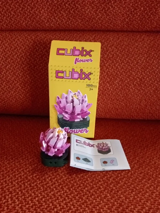 Dettagli del prodottoSet di costruzioni Cubix a forma di fiore di loto, simile ai mattoncini Lego.