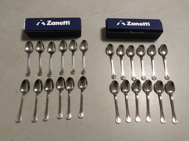 Dettagli del prodottoCausa misura errata vendo set di 24 cucchiaini da caffè marca Zanetti, modello "Moka Deco" in acciaio Inox (misura 11,5 cm), Made in Italy.