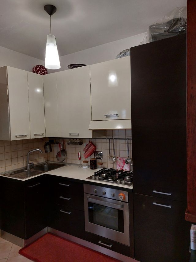 Dettagli del prodottoVendesi cucina angolare Cesar, modello Lucrezia cm 245 x cm 95 con basi in rovere moro opaco, pensili (h 96 cm) laminato lucido avorio e zoccolo-maniglie satinati + base in rovere moro opaco cm 120 x cm 60. La cucina è comprensiva di lavello in acciaio Franke a due vasche, piano cottura Ariston a rombo 4 fuochi, forno ventilato Rex e frigorifero