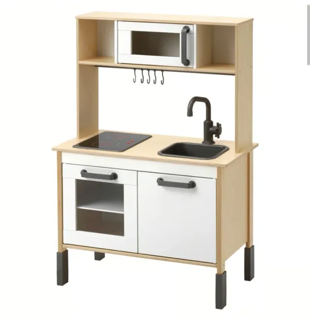 Cucina giocattolo in legno e bianco, perfetta per i più piccoli.