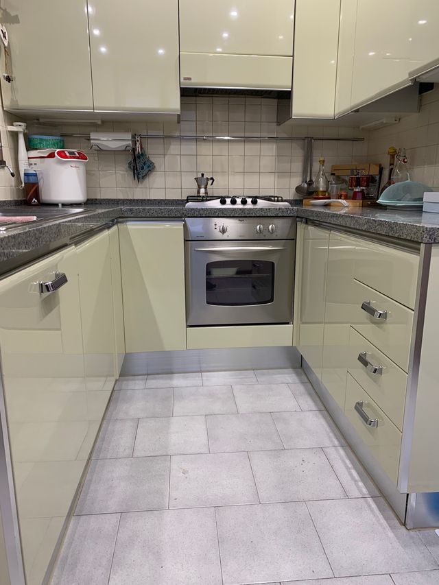 Vendo cucina Scavolini 215x210x183 altezza 94 con ripiano in quarzo, in piu tavolo per colazioni lunghezza 150 con frigo a incasso