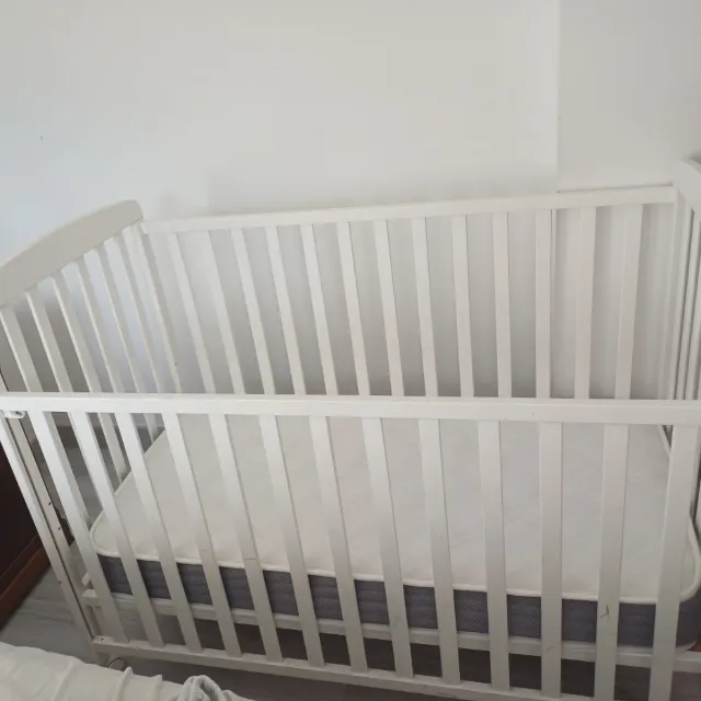 Dettagli del prodottoCulla per neonato di colore bianco, con un design classico e sicuro. Struttura in legno, barriere di sicurezza e materasso incluso. Leggero usura per salire e scendere. Può essere posizionata in due posizioni. Ottimo materasso, perfetto. Ha lato estate e inverno. Regalo di 2 copripiumini e lenzuola se qualcuno vuole. Dimensioni 120x60. Ruote per spostarsi. Acquistato da Corte Inglés. La descrizione è stata tradotta automaticamente.
