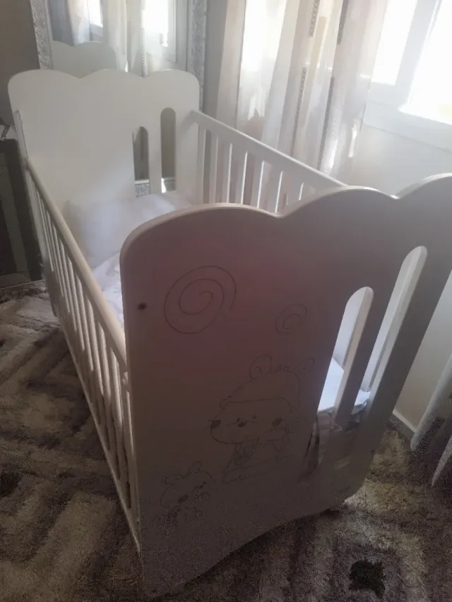 Dettagli del prodottoCulla per bambini in bianco, con un design dolce e sicuro per i più piccoli. Perfetta per il riposo del bambino. - Lati con sbarre. - Design con figure infantili su uno dei pannelli. La descrizione è stata tradotta automaticamente.