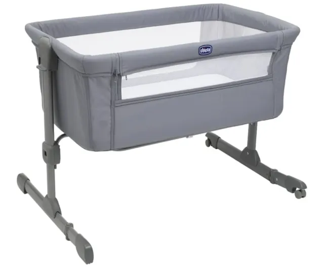 Dettagli del prodottoCulla con materasso Chicco in grigio, con fianchi in rete traspirante.