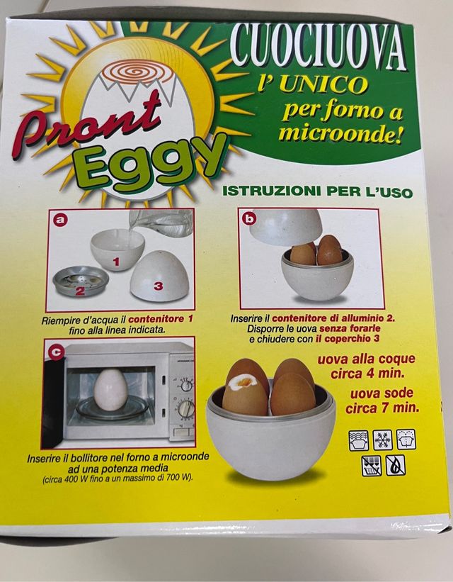 Cuociuova marca “Pronteggy” per cuocere fino a 4 uova nel forno a microonde 4 minuti uova alla coque 7 minuti uova sode