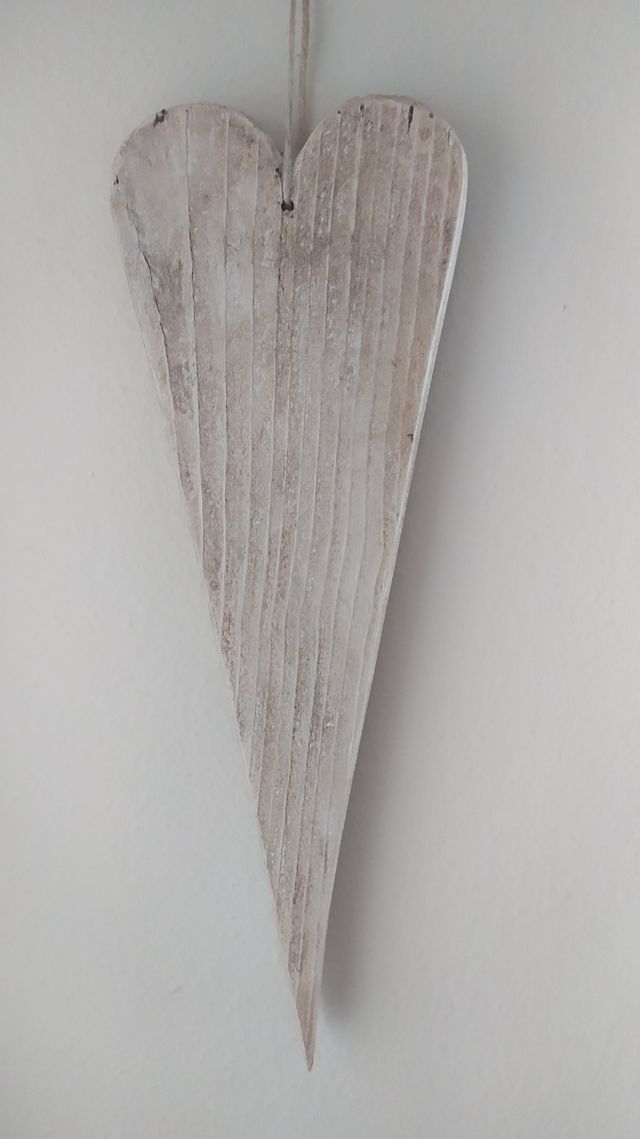 fatto a mano in legno riciclato cuore in stile Country colore bianco avorio. da appendere, altezza 31 cm.