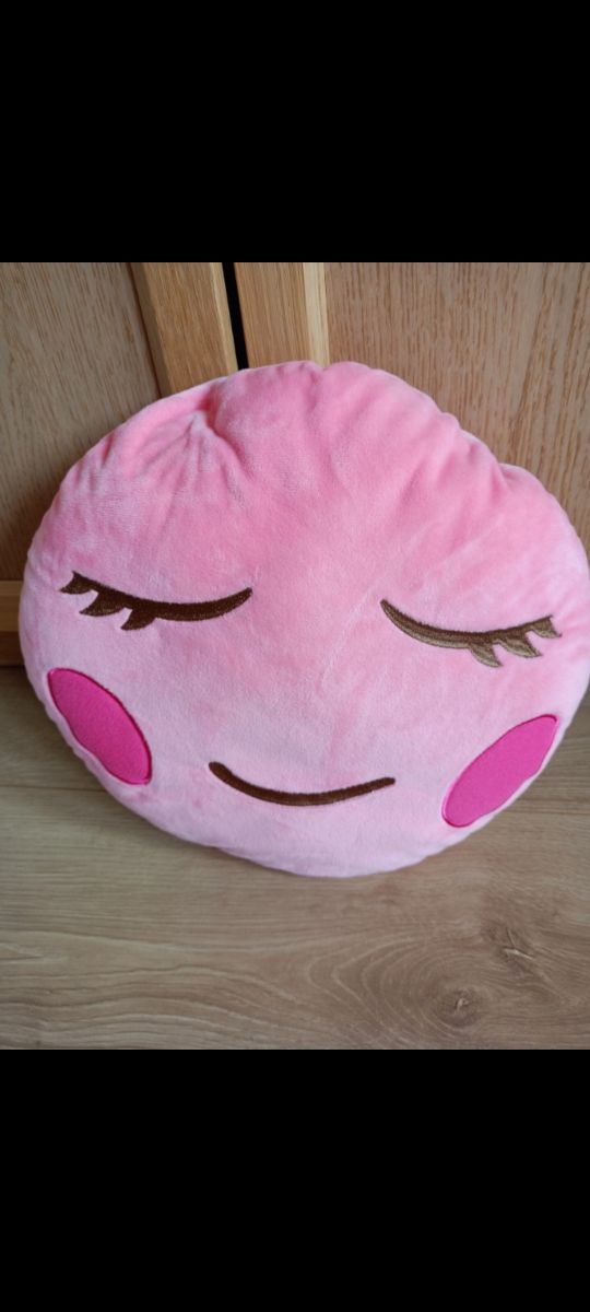 Morbido cuscino a forma di nuvola, colore rosa. - Design con occhi chiusi e guance rosse. - Cuciture marroni per occhi e bocca. - Materiale soffice al tatto.