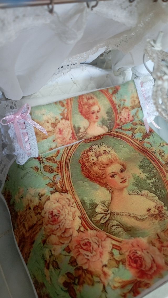 Dettagli del prodottoCuscino decorativo per casa delle bambole, con un'elegante stampa ispirata a Maria Antonietta.