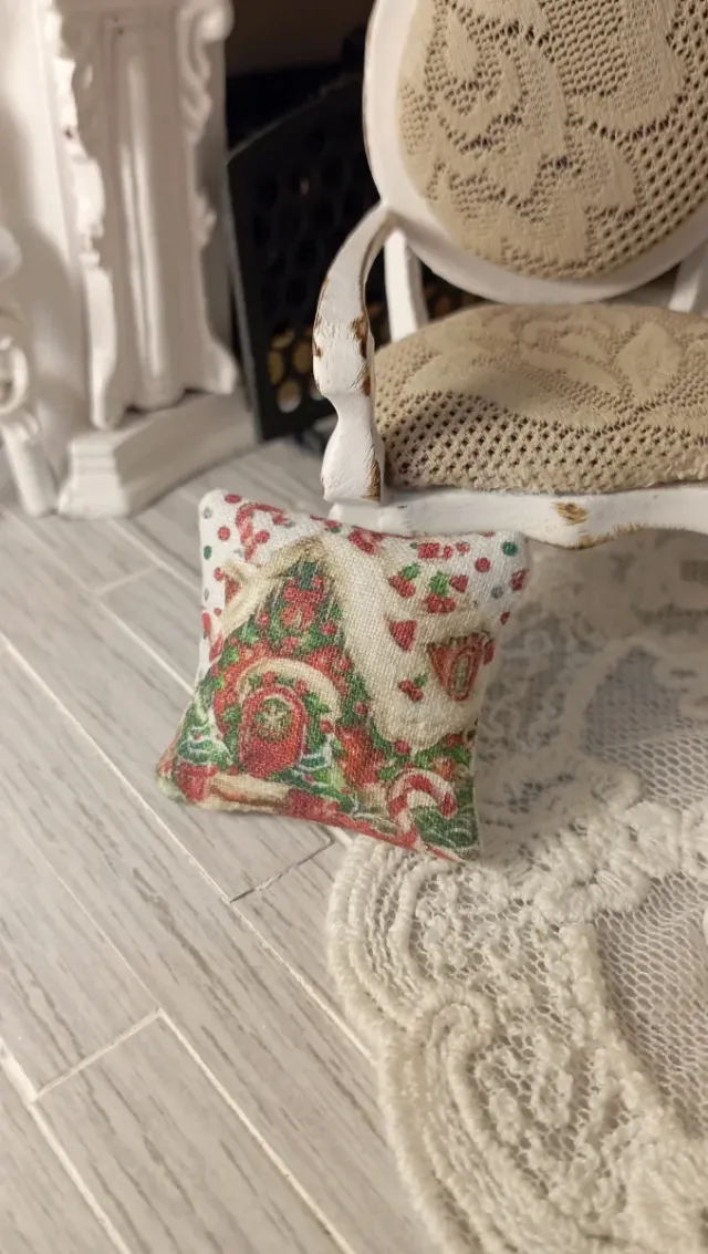Dettagli del prodottoGrazioso cuscino a tema natalizio, perfetto per la tua casa delle bambole in scala 1:12. Aggiunge un tocco festivo e accogliente.