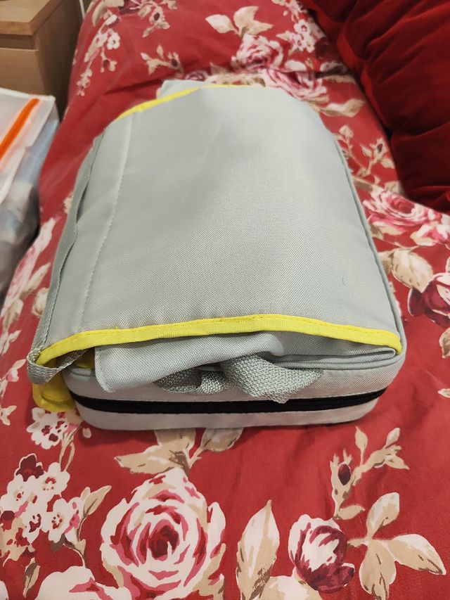 Dettagli del prodottoRialzo pieghevole per bambini. Cinghie in ottimo stato. Rimasto leggermente macchiato sulla seduta. Leggero. Portabile in borsa capiente. Misure del prodotto
