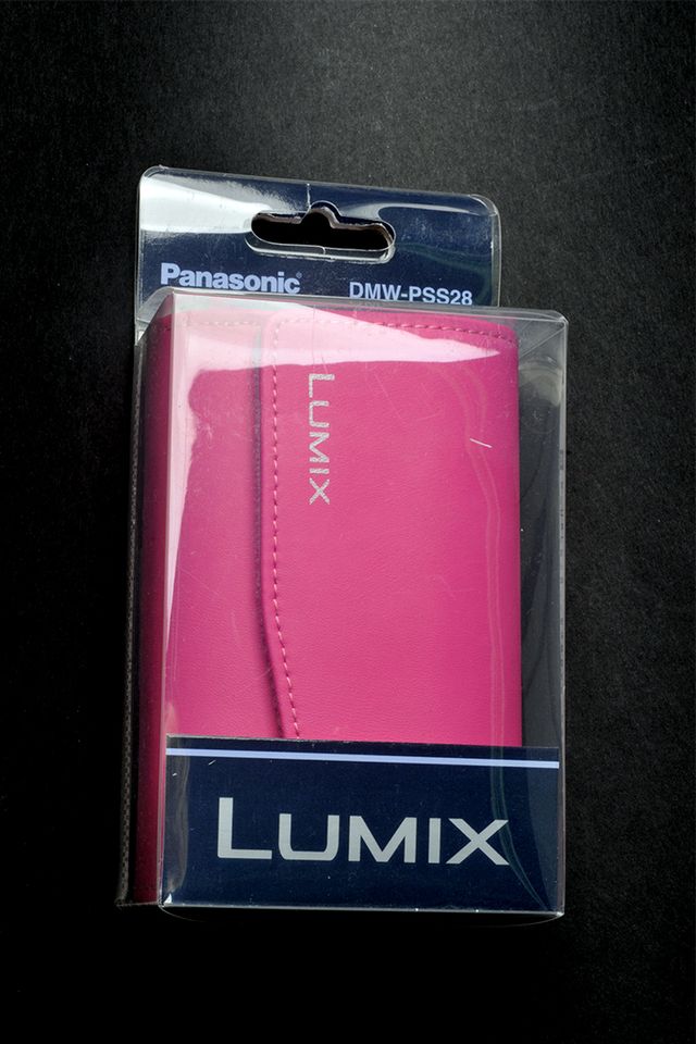 Custodia originale Panasonic per fotocamere Lumix. - Colore rosa vivace. - Logo Lumix stampato. - Modello DMW-PSS28.