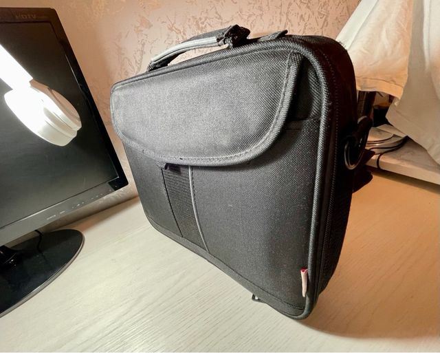 Vendo custodia a valigetta resistente fuori, morbida dentro con molte tasche. Dimensioni: Larghezza 32 Altezza 27