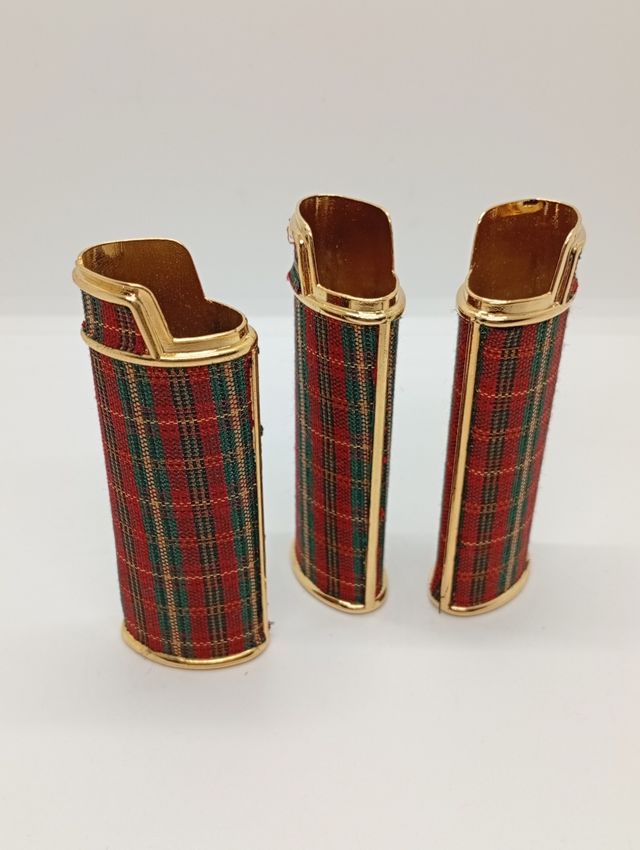 Dettagli del prodottoSet di tre custodie per accendino Bic vintage. Sono in ottime condizioni, con un motivo scozzese rosso e verde. Le custodie sono realizzate in tessuto e metallo dorato. Ideali per collezionisti o per un regalo originale! - 3 custodie per accendini - Motivo scozzese rosso e verde - Metallo dorato - Ottime condizioni
