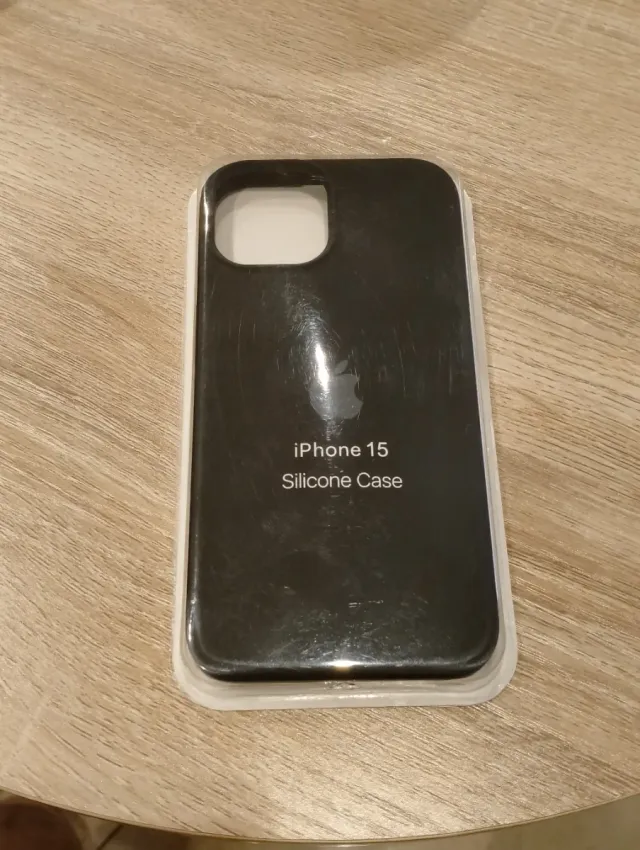Custodia in silicone per iPhone 15. - Colore nero. - Materiale in silicone. Unico pezzo, nuovo e sigillato.
