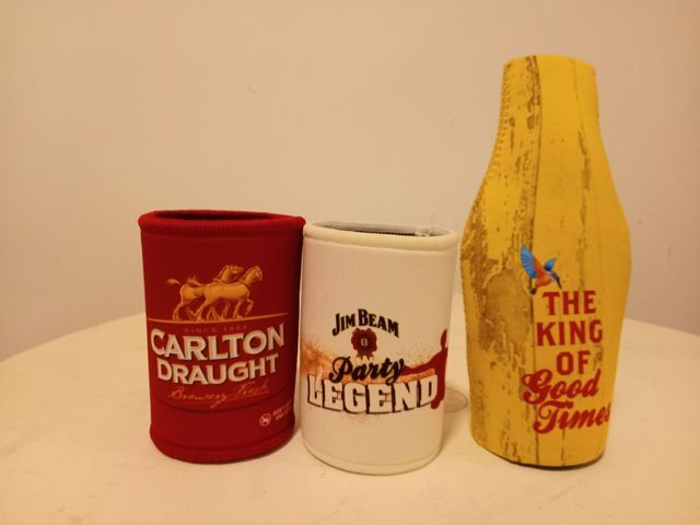 3 custodie termiche in neoprene (2 per lattine e 1 per bottiglie da 0,33 cl). In perfette condizioni e mai usate.