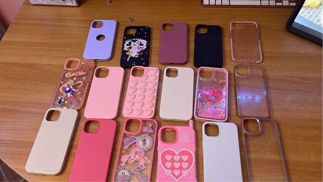 bellissime cover praticamente nuove, usate pochissimo, zero difetti, con rosa, glitter e anche nude e pastello!