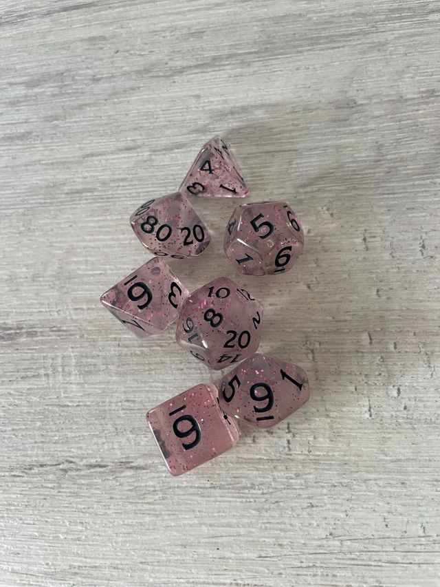 Dettagli del prodottoSet di 7 dadi per Dungeons & Dragons. Sono dadi poliedrici, perfetti per le tue sessioni di gioco. Colore nero e viola scuro.