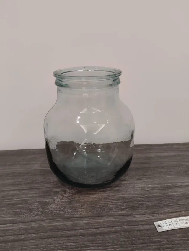 Damigiana in vetro trasparente con un design a bocca larga. - Materiale: Vetro - Colore: Trasparente