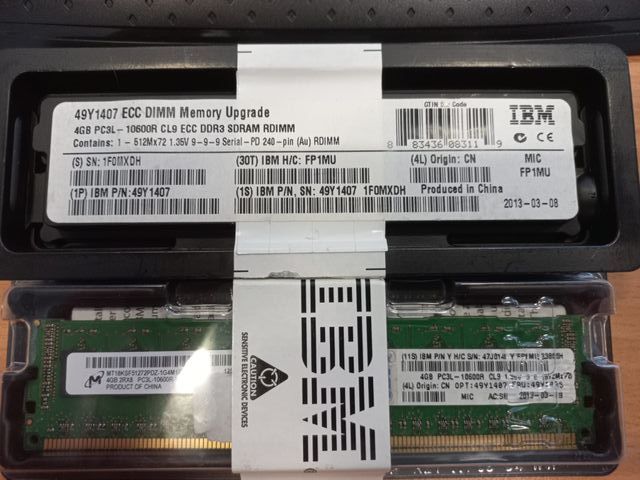 4PC3L 10600R CL9 ECC DDR3 SDRAM RDIMM. Pacchetti aperti ma memorie mai utilizzate.
