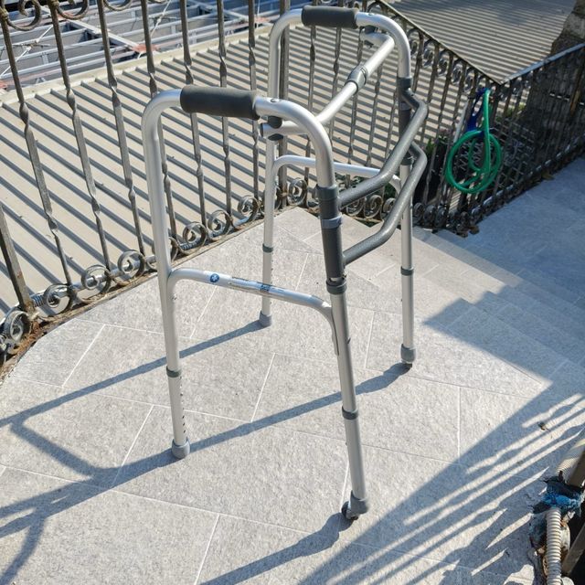 Dettagli del prodottoDeambulatore in alluminio, leggero e resistente. Dotato di manopole ergonomiche per una presa confortevole.