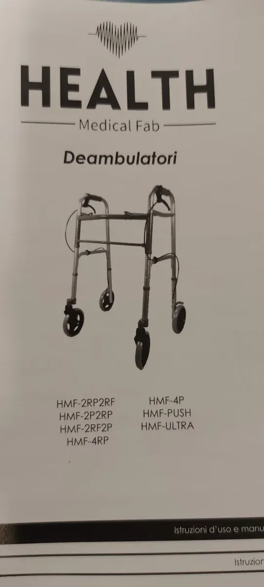 Deambulatore marca HEALTH Medical Fab. - Modello: Deambulatori - Codici disponibili: HMF-2RP2RF, HMF-2P2RP, HMF-2RF2P, HMF-4RP, HMF-4P, HMF-PUSH, HMF-ULTRA