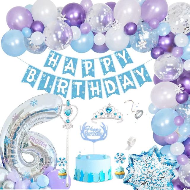 Dettagli del prodotto🎈🎉【Decorazioni per il compleanno di Frozen】: palloncini da 12 pollici* (10 palloncini viola, 10 palloncini blu, 10 palloncini bianchi, 5 palloncini metallici viola, 5 palloncini coriandoli con fiocchi di neve), palloncini in lattice da 5 pollici* (5 viola, 5 blu, 5 bianchi), 32 palloncini in alluminio numero 6, 1 globo in alluminio con fiocchi di neve, 5 fiocchi di neve bianchi, 1 HAPPY Striscione di compleanno, 1 corona di fata congelata, 1 bacchetta, 1 decorazione per torta, 1 punto di colla, nastro, una catena di palloncini. La descrizione è stata tradotta automaticamente.