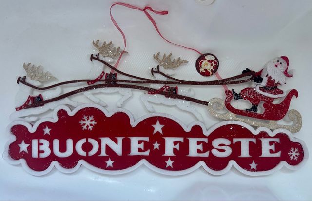 Decorazione Babbo Natale slitta Buone Feste