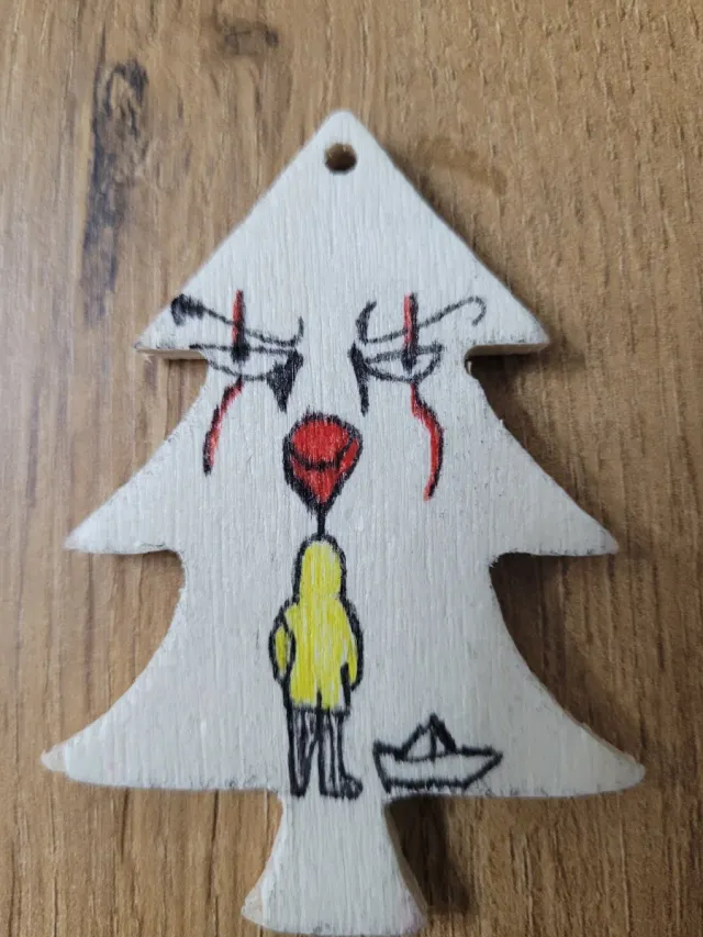 Decorazione in legno fatta a mano, ispirata al film IT. - Realizzata in legno. - Può essere usata come magnete o da appendere.