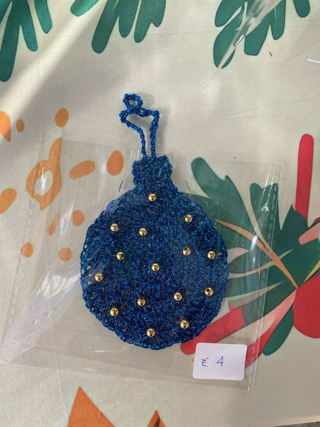 Decorazione natalizia blu con perline dorate