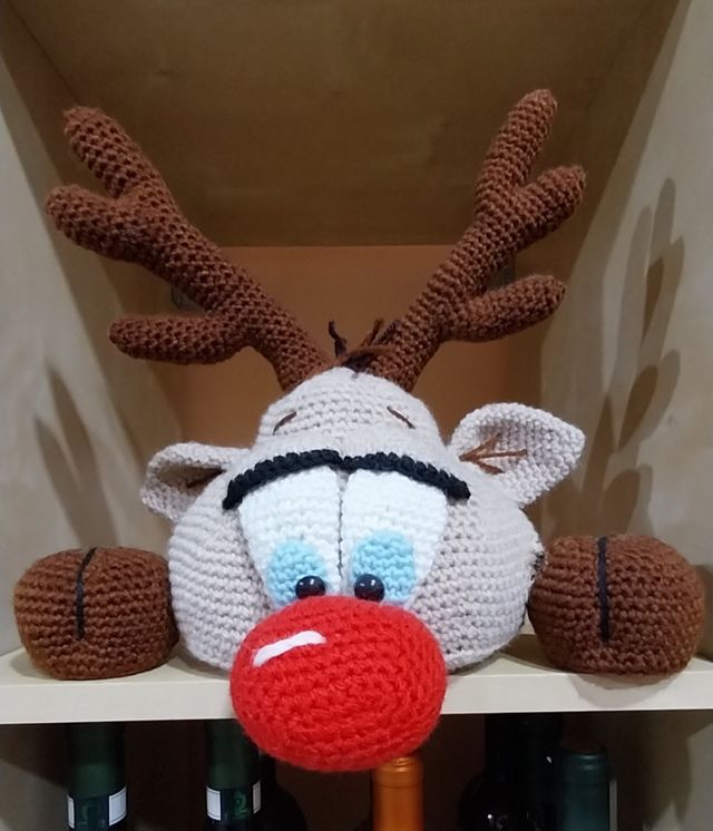 Dettagli del prodottodecorazione natalizia di Rudolph la renna di babbo natale,fatta a mano ad uncinetto Misure del prodotto